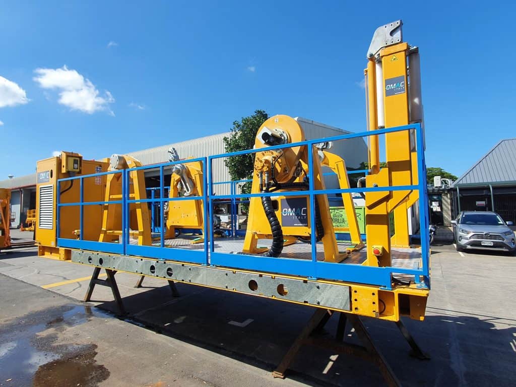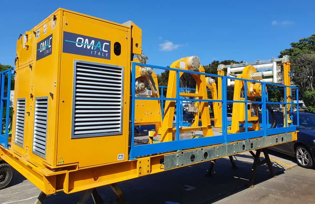 This compact, fully independent twist lock mounted dual drum unit is ideal for tensioning and recovery of overhead wire.